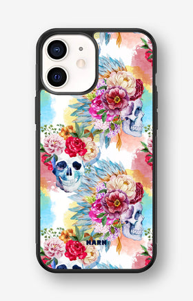 iPhone 12 Mini Wallet Case - Flowered Skulls