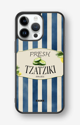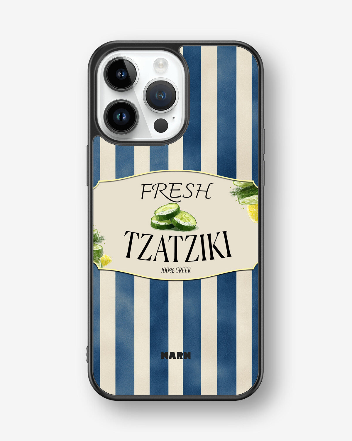 This design features: cucumber, lemon, greek, stripes, tzatziki