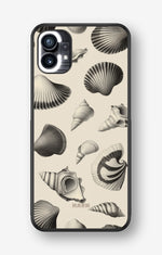 This design features: beach style, ocean theme, monochrome, seashells