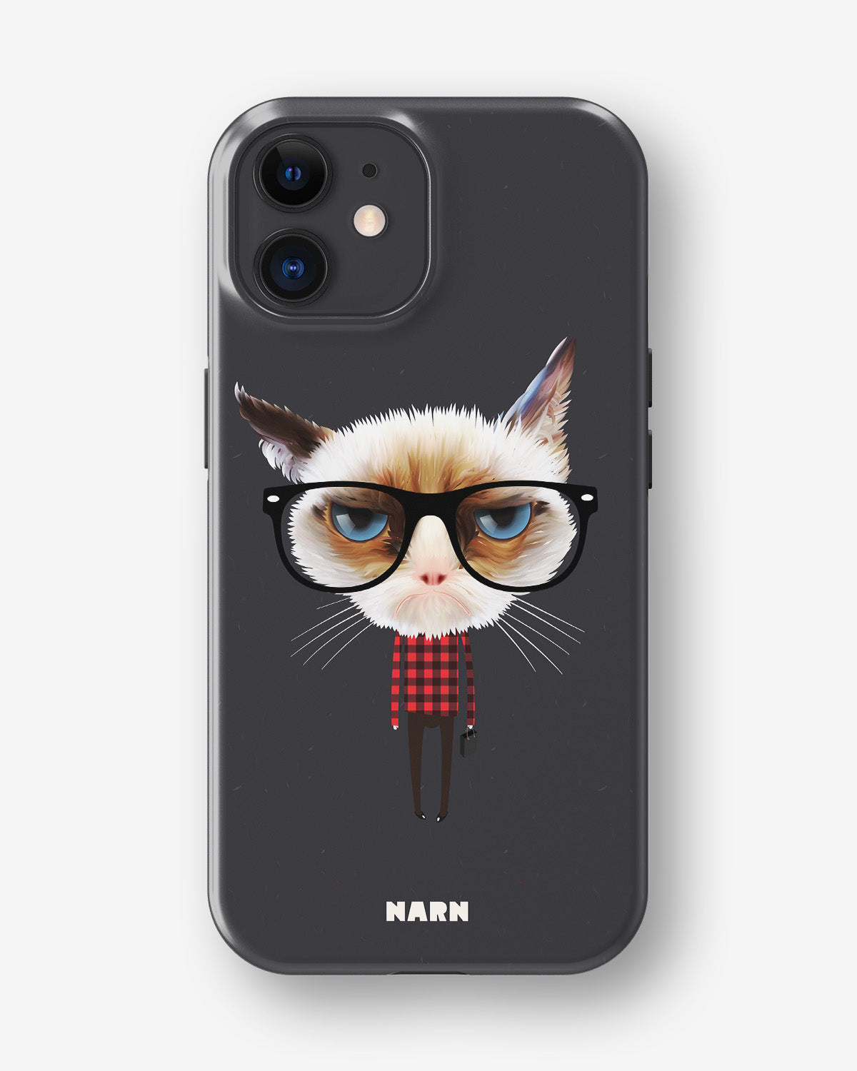 Möt Tough Mobilskal för iPhone 12 Mini i mönstret: Hipster Cat. Tufft på utsidan, mjukt på insidan. Det här skalet är gjort för att skydda din telefon mot vardagens tapp, repor och överraskningar – samtidigt som den ser stilren ut.
