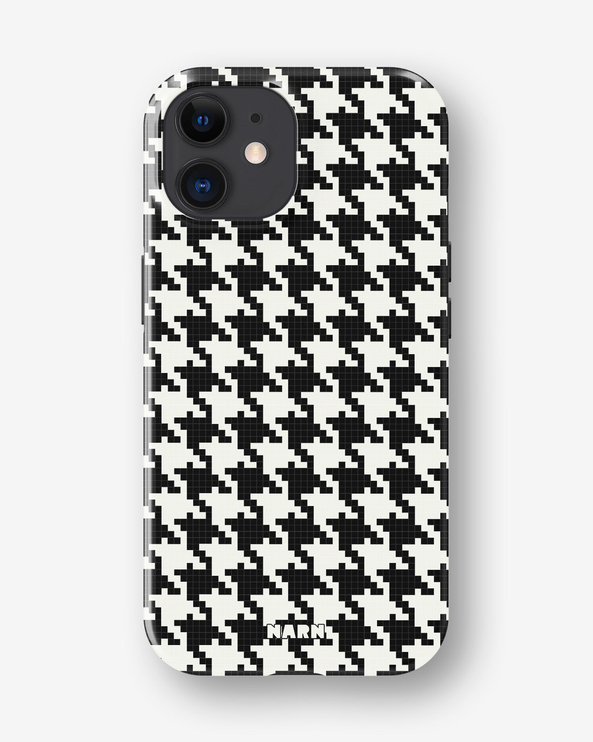 Möt Tough Mobilskal för iPhone 12 Mini i mönstret: Houndstooth. Tufft på utsidan, mjukt på insidan. Det här skalet är gjort för att skydda din telefon mot vardagens tapp, repor och överraskningar – samtidigt som den ser stilren ut.