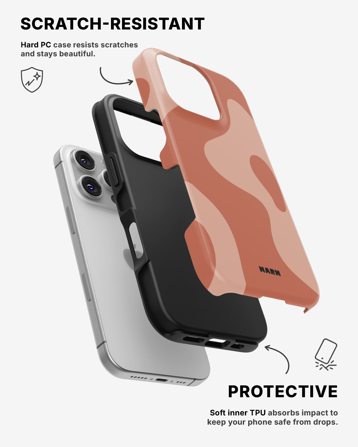 Det hårda bakstycket i polykarbonat (PC) håller motivet levande och motståndskraftigt mot slitage, medan insidan i TPU ger stötdämpning och ett bekvämt grepp. Ett skal som känns tryggt i handen och ser rätt ut överallt.