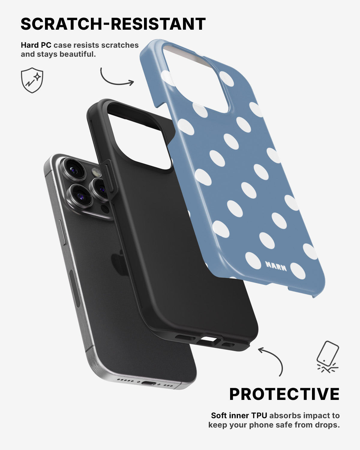 Det hårda bakstycket i polykarbonat (PC) håller motivet levande och motståndskraftigt mot slitage, medan insidan i TPU ger stötdämpning och ett bekvämt grepp. Ett skal som känns tryggt i handen och ser rätt ut överallt.