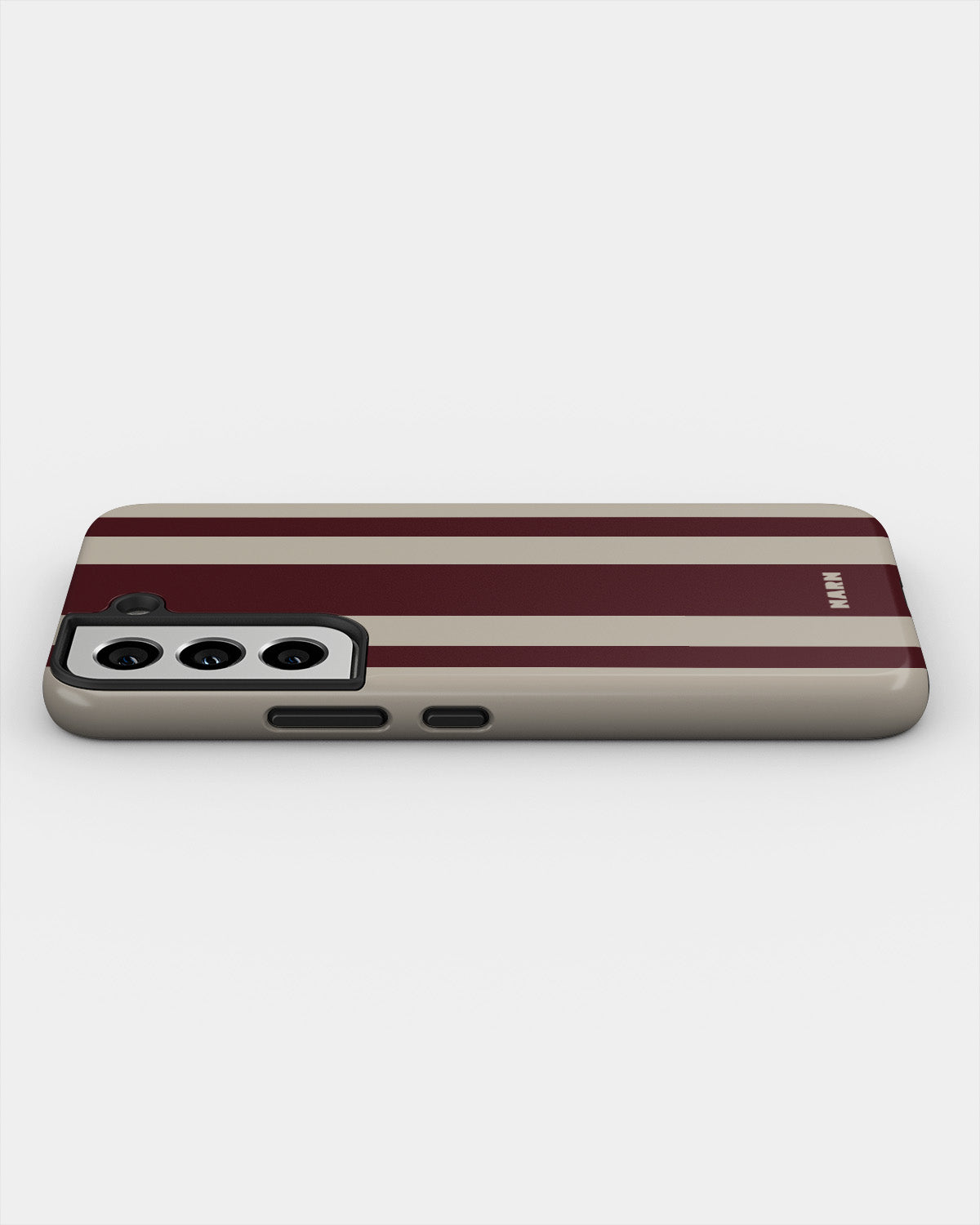 Möt Tough Mobilskal för Samsung Galaxy S21 i mönstret: Bordeaux Stripe. Tufft på utsidan, mjukt på insidan. Det här skalet är gjort för att skydda din telefon mot vardagens tapp, repor och överraskningar – samtidigt som den ser stilren ut.